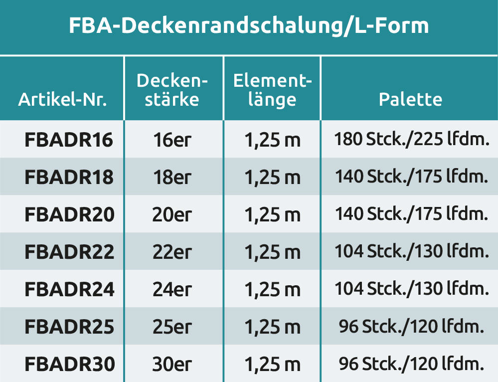 Mit unserer FBA-Deckenrandschalung L-Form und den praktisch und flexibel einsetzbaren FBA-Bords funktioniert die Abschalung schnell und einfach ...